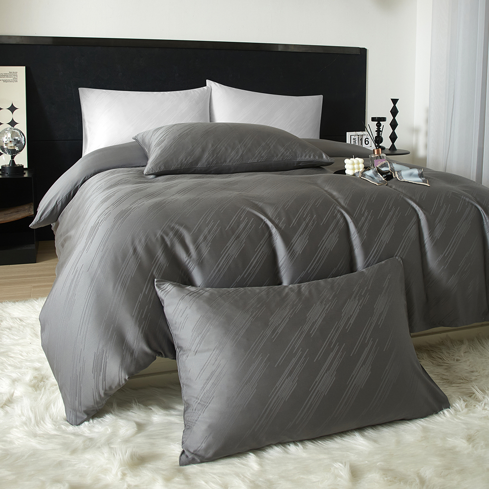 Our In The Mood Collection features fine geometric jacquard linings which adds a touch of whimsy and artistry to your bedroom decor, transforming your space into a celestial haven. Available in two elegant colors — deep blue and sophisticated grey.