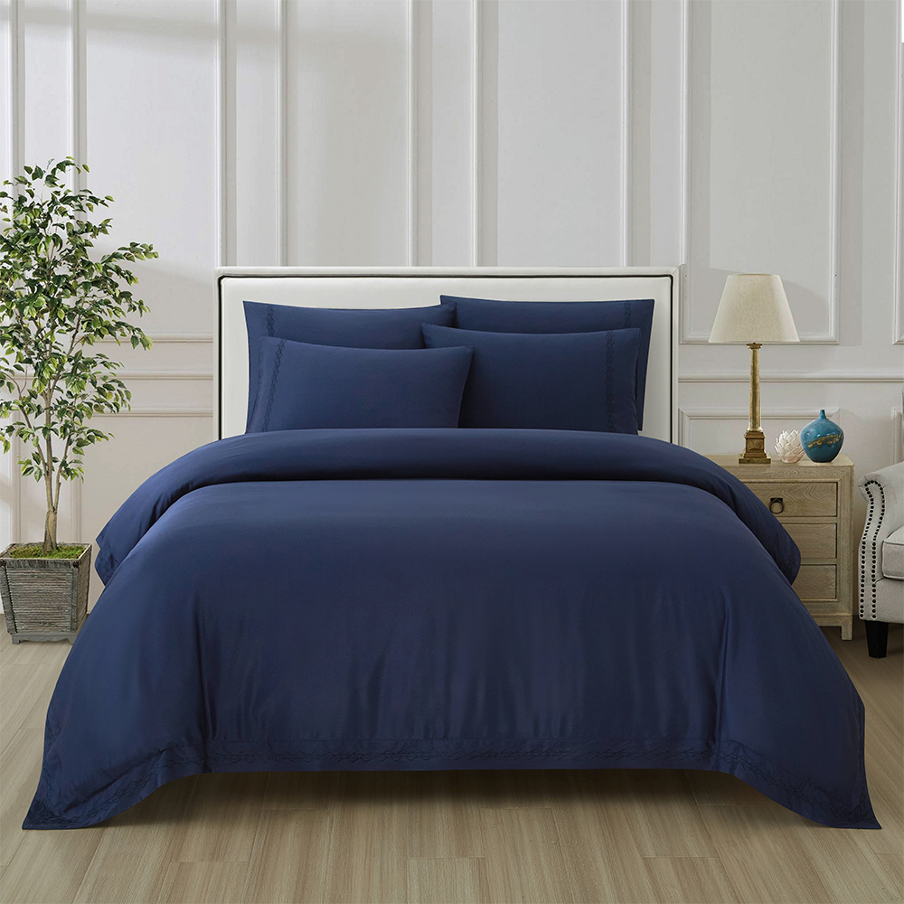 Our Infinite Collection features pure bamboo fiber with intricate embroidery trimming. Our pure bamboo fiber is an eco-friendly and natural product, which is produced through environmentally responsible processes from sustainably source natural wood. The natural Bamboo yarns have an exquisite sheen and soft opulent touch – making it the ultimate choice for a luxury bed room setting.