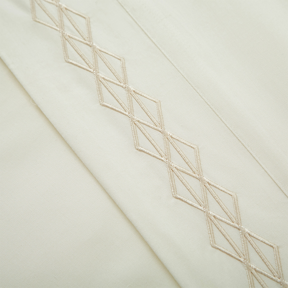 Our Infinite Collection features pure bamboo fiber with intricate embroidery trimming. Our pure bamboo fiber is an eco-friendly and natural product, which is produced through environmentally responsible processes from sustainably source natural wood. The natural Bamboo yarns have an exquisite sheen and soft opulent touch – making it the ultimate choice for a luxury bed room setting.
